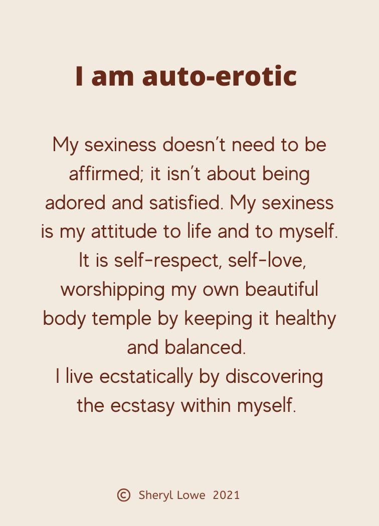 I can’t tell you how freeing this feels. I have gone from a state of needing to ‘be good’ to feel accepted, needing to be seen as respectable, competent, well presented, humble and reserved, to a state or feeling of “I have a secret piece of magic I carry with me and it excites and turns me on. You can see it in my smile, my energy the way I carry myself but you will never be able to know who I really am.”